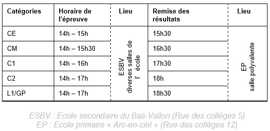 L’accueil et les épreuves se dérouleront à l’école secondaire du Bas-Vallon, Rue des Collèges 5